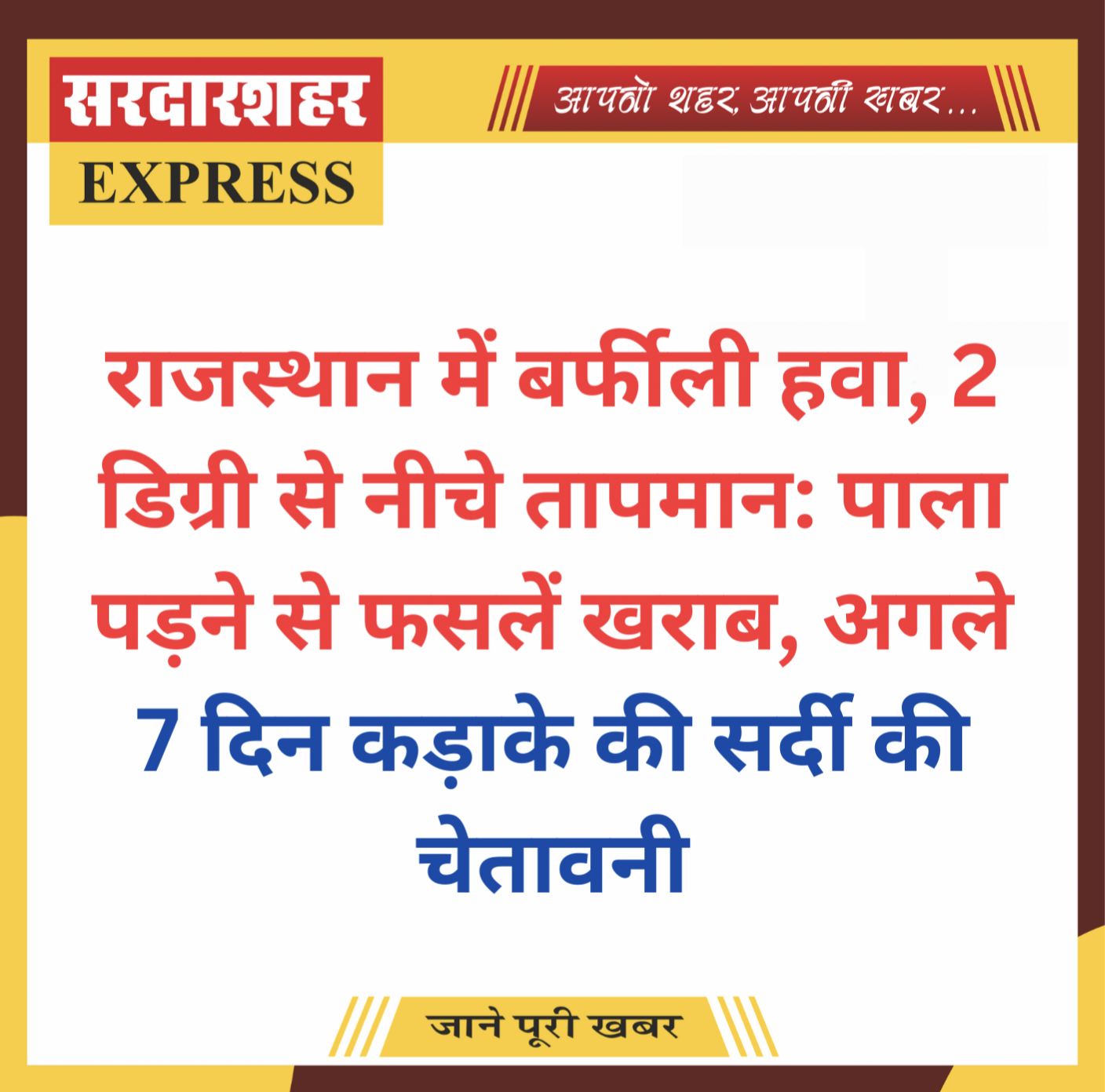 सरदारशहर एक्सप्रेस 6 दिसंबर 2025। उत्तर से आ रही बर्फीली हवा से राजस्थान में हाड कंपाने वाली सर्दी शुरू हो गई है। शेखावाटी के इलाकों…
