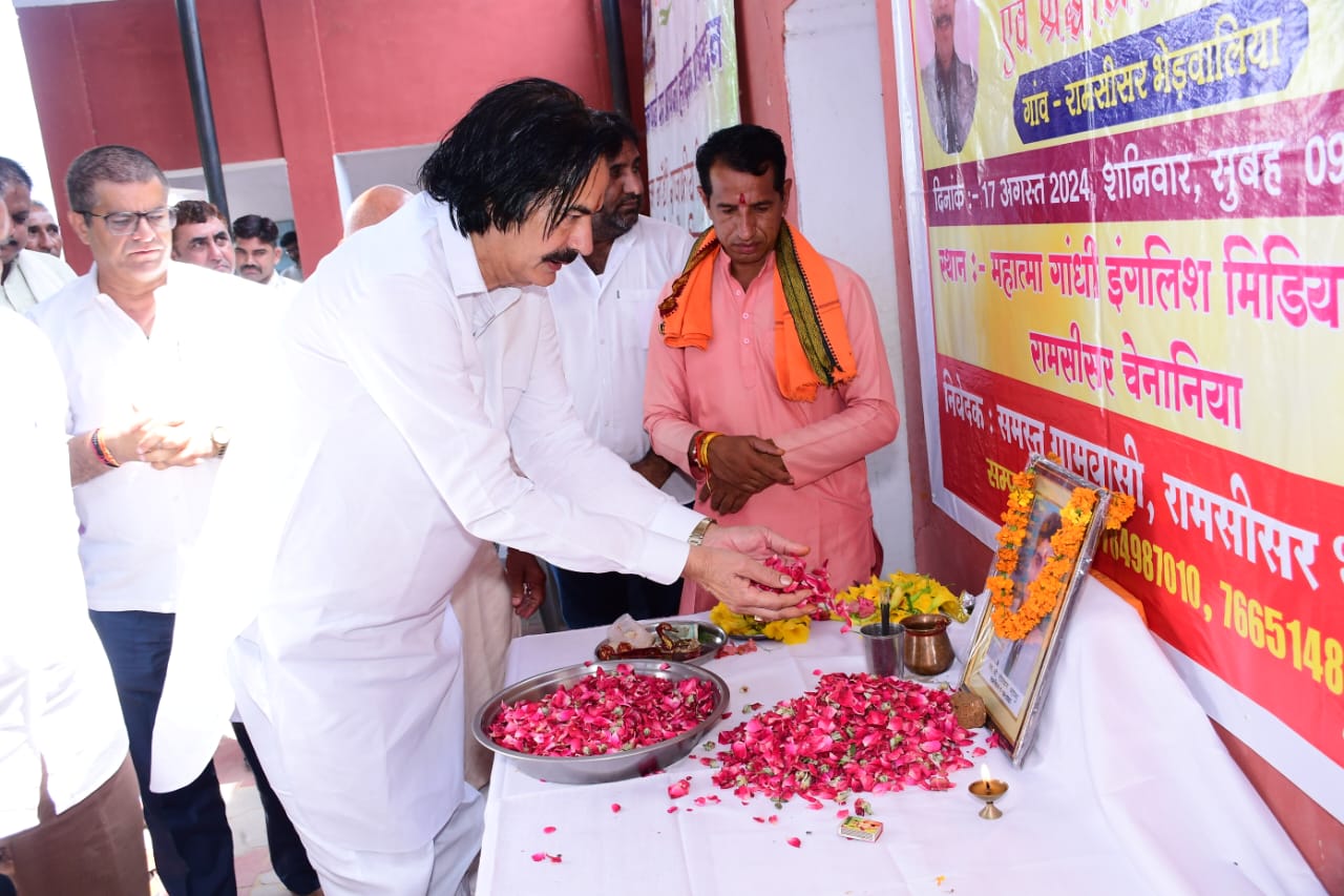 सरदारशहर एक्सप्रेस। स्थानीय महात्मा गांधी राजकीय विद्यालय रामसीसर चैनानियां मे शनिवार को स्वर्गीय गोवर्धन भांभू की प्रथम पुण्यतिथि पर विशाल रक्तदान शिविर का आयोजन किया गया। इसके पश्चात स्वर्गीय गोवर्धन भांभू की प्रतिमा के समक्ष पुष्प अर्पित किए।