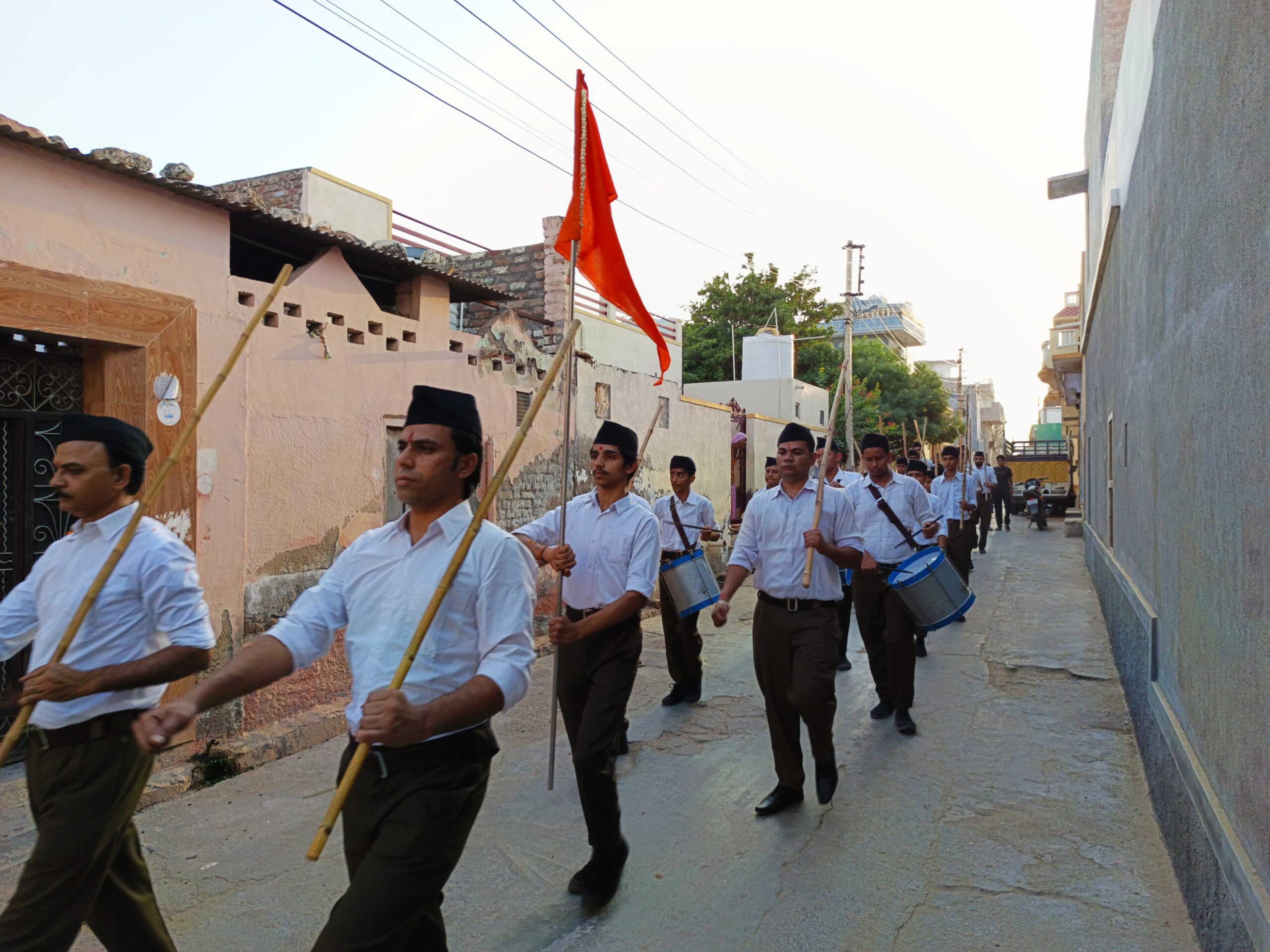 सरदारशहर एक्सप्रेस। राष्ट्रीय स्वयंसेवक संघ सरदारशहर नगर की दयानन्द, केशव व प्रताप बस्ती में शताब्दी वर्ष के अवसर पर पथ संचलन निकाला गया। घोष की धुन पर कदम से कदम मिलाते हुए स्वयंसेवक शिव बाड़ी स्थित दयानन्द शाखा स्थल से प्रारंभ होकर सलामपुरिया कुआं, गणेश मंदिर, बालाजी सुपर मार्केट , देव अपार्टमेंट, सूर्य मंदिर, प्रजापति चौक, विजय पैलेस से होते हुए संतोषी माता मंदिर के पास केशव शाखा स्थल पहुंचे। पथ संचलन का जगह-जगह पुष्प वर्षा और भारत माता की जय के घोष के साथ स्वागत किया गया।