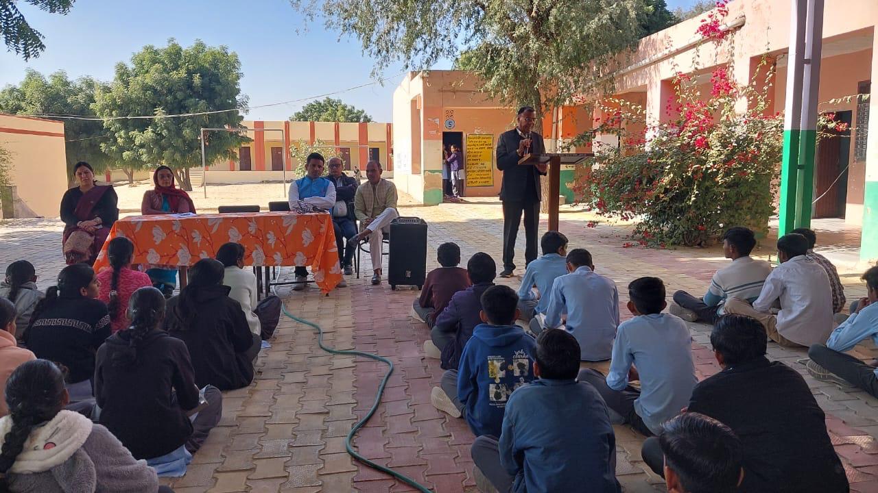 साथ ही उन्होंने BFSI सेक्टर में उपलब्ध करियर अवसरों पर भी विस्तार से जानकारी दी तथा बैंकिंग, बीमा एवं वित्तीय सेवाओं में रोजगार की व्यापक संभावनाओं से विद्यार्थियों को अवगत कराया। उन्होंने छात्रों को समय रहते सही दिशा में तैयारी शुरू करने का आह्वान किया। विद्यालय की प्रधानाचार्य लक्ष्मी पारीक एवं समस्त स्टाफ ने हुलासमल व्यास का आभार व्यक्त करते हुए कहा कि ऐसे अनुभवी एवं प्रेरक व्यक्तित्वों के मार्गदर्शन से विद्यार्थियों में आत्मविश्वास, जागरूकता एवं भविष्य के प्रति स्पष्ट दृष्टिकोण विकसित होता है। कार्यक्रम में वैशाली झाझड़िया, कोशल मिश्र, मदन सिंह पुरोहित, राजकुमार तिवारी, गोपालराम जांगिड सहित अन्य शिक्षकगण उपस्थित रहे। बड़ी संख्या में छात्र-छात्राओं ने उत्साहपूर्वक भाग लिया। कार्यक्रम के अंत में विद्यालय परिवार एवं प्रधानाचार्य लक्ष्मी पारीक द्वारा हुलासमल व्यास का सम्मान कर धन्यवाद ज्ञापित किया गया।