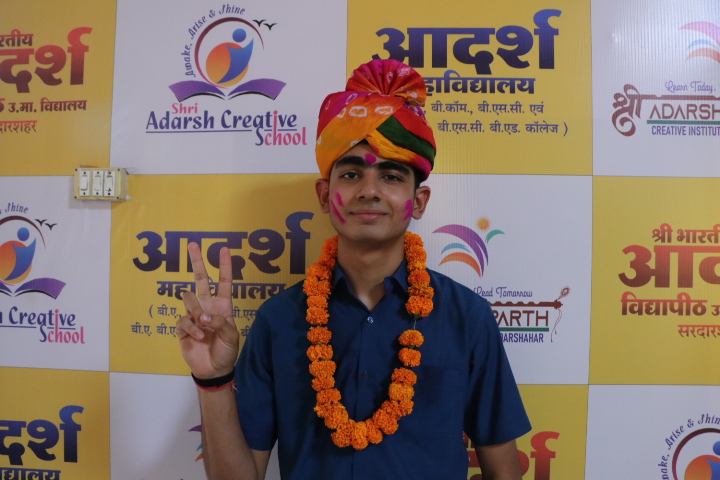 विद्यालय परिवार द्वारा विधार्थियो व अभिभावकों को साफा व माला पहना कर ग़ुलाल लगाकर मिठाई खिलाकर सम्मानित किया व शानदार आतिशबाजी कर बेहतरीन परीक्षा परिणाम का जश्न मनाया। भारी संख्या में समारोह में मौजूद ग्रामीण व शहर से पधारे गणमान्य जनों ने विधार्थियो व विद्यालय परिवार को बधाई व शुभकामनायें प्रदान की। इस अवसर पर प्रधानाचार्य राधेश्याम बढ़ाढरा ने बताया कि यह एक अनूठी उपलब्धि है। सचिव राधा लाटा ने आदर्श प्रतिभाओं को इस स्वर्णिम सफलता पर बधाई देते हुए आदर्श टेस्ट सीरीज ,आदर्श महासंग्राम , स्टॉफ की कड़ी मेहनत ,अभिभावकों का विद्यालय प्रशासन के प्रति सकारात्मक सहयोग तथा विद्यार्थियो के नियमित अध्ययन को इस सफलता का श्रेय दिया । समारोह में उपस्थित अभिभावकों ने आदर्श को शहर का गौरव बताया । अनेक विद्यार्थियो ने भी अपने विचार रखे । कार्यक्रम में सुशील गोस्वामी, शिवरतन पारीक, व सभी आदर्श टीम उपस्थित रही। संचालन अभिमन्यु लाटा ने किया।