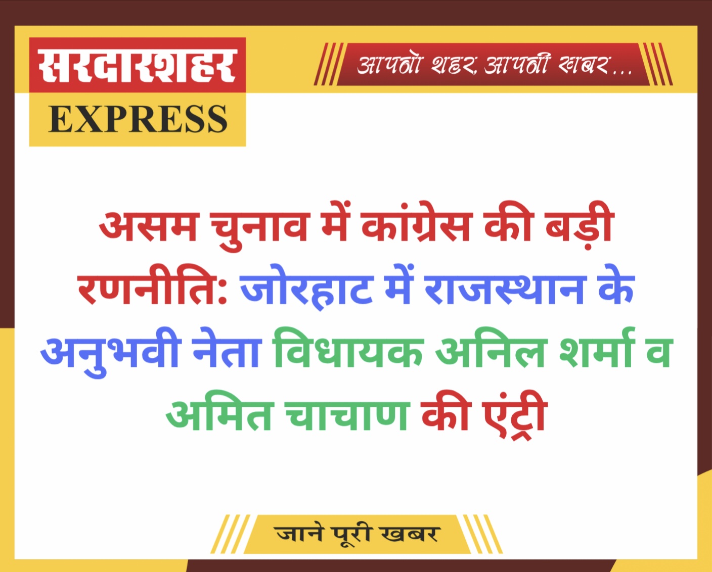 सरदारशहर एक्सप्रेस। आज वार्ड नं 21 निवासी मनीष सोनी पुत्र हनुमानमल सोनी…
