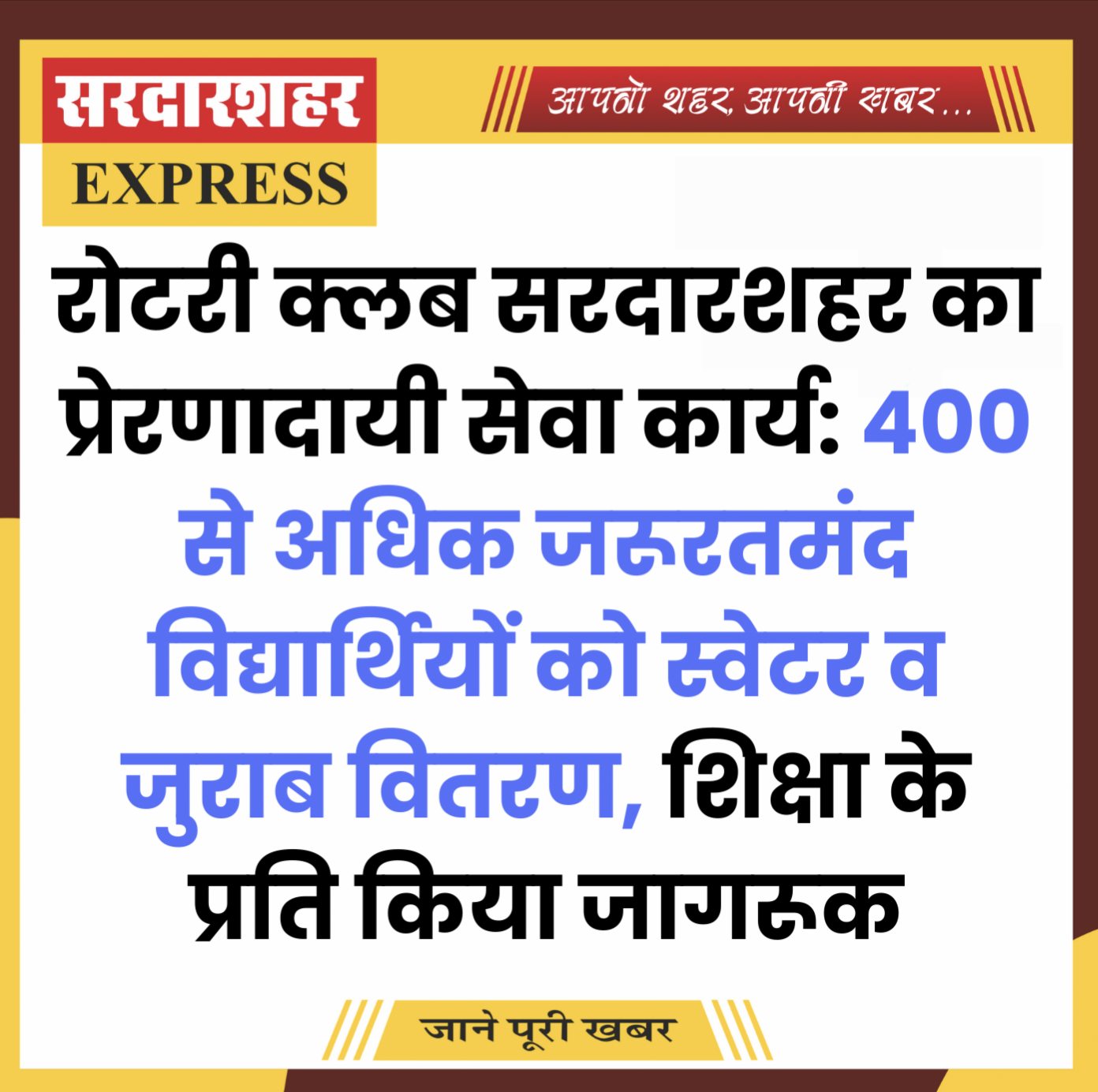 सरदारशहर एक्सप्रेस। श्री भारतीय आदर्श विद्यापीठ सीनियर सैकेंडरी स्कूल गर्ल्स विंग में भामाशाह रजत दुगड़ द्वारा अपनी स्वर्गीय पिताश्री हीरालाल दुगड़ की स्मृति में वाटर कूलर भेंट किया गया । भामाशाह दुगड़ अपनी माता हेमा दुगड़ की प्रेरणा से प्रति वर्ष विभिन्न संस्थाओं में अनेक विकास कार्य करवा चुके है ।