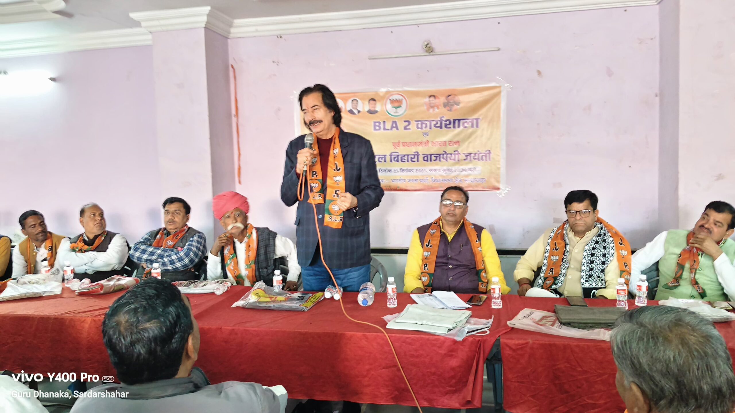 सरदारशहर एक्सप्रेस 25 दिसंबर 2025/ मनीष पांडिया। विधानसभा क्षेत्र के भाजपा कार्यकर्त्ताओं और BLA 2 की कार्यशाला का आयोजन शहर के शनि मंदिर गेस्ट हॉउस में किया गया। कार्यशाला की शुरुआत देश के पूर्व प्रधानमंत्री अटल बिहारी वाजपेयी की 101वीं जन्म जयंती के अवसर पर दीप प्रज्वलित कर श्रद्धांजलि देकर की गई। कार्यशाला में पूर्व मंत्री राजकुमार रिणवा, भाजपा जिलाध्यक्ष बसंत शर्मा, जिला उपाध्यक्ष मधुसूदन राजपुरोहित, ओबीसी मोर्चा जिलाध्यक्ष मुरलीधर सैनी, हनुमानगढ़ सहप्रभारी जीतेन्द्र शर्मा, जिला मंत्री श्याम पारीक, जिला प्रवक्ता दिनेश सोनगरा, पूर्व प्रधान भैरोसिंह राजपुरोहित, मंडल अध्यक्ष राजवीर सिंह राठौड़, दीपक शर्मा, डालाराम महिया, ओमप्रकाश नायक, अश्विनी मकवाना आदि मंचस्थ रहें।
