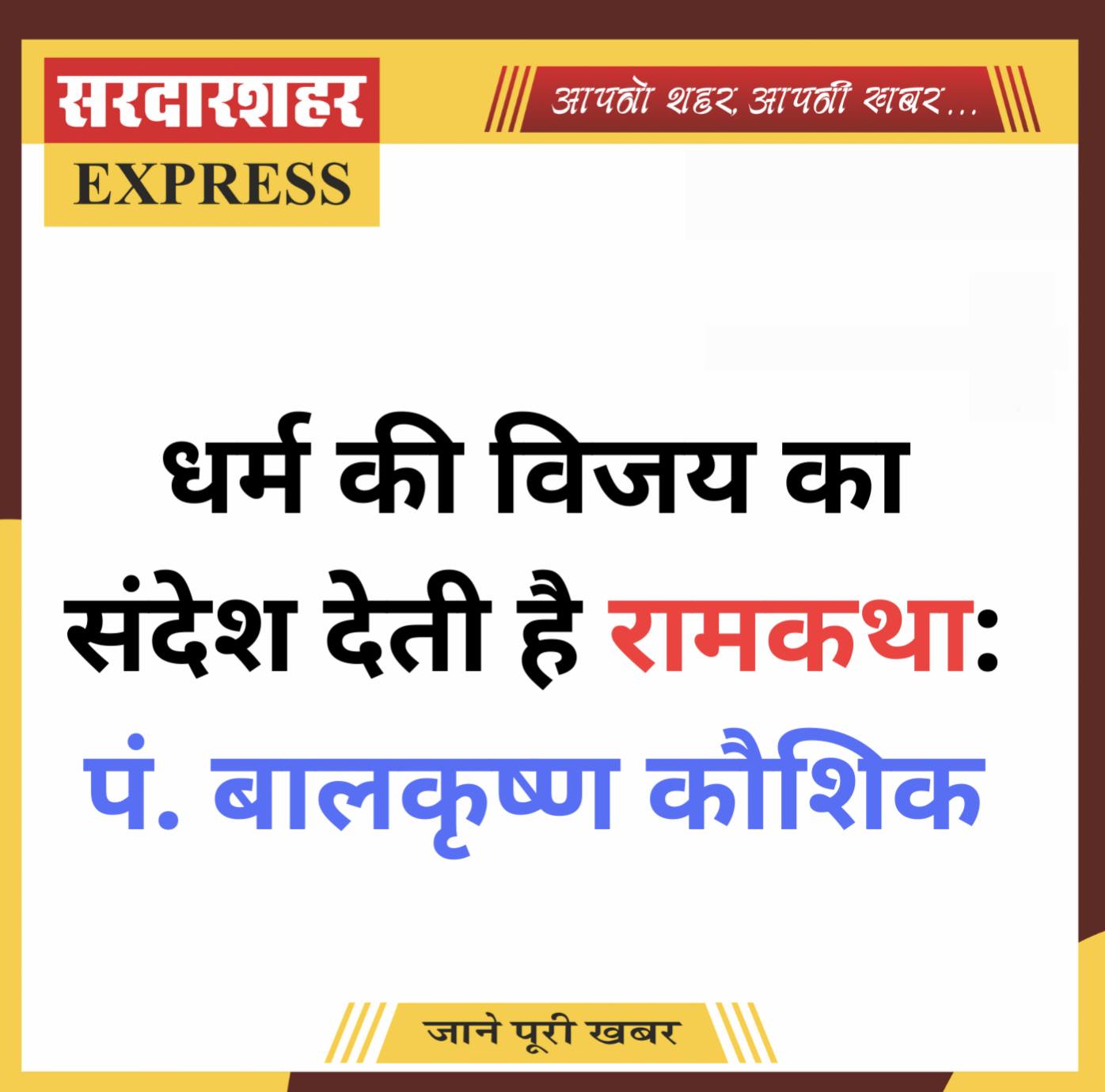 धर्म की विजय का संदेश देती है रामकथा: पं. बालकृष्ण कौशिक