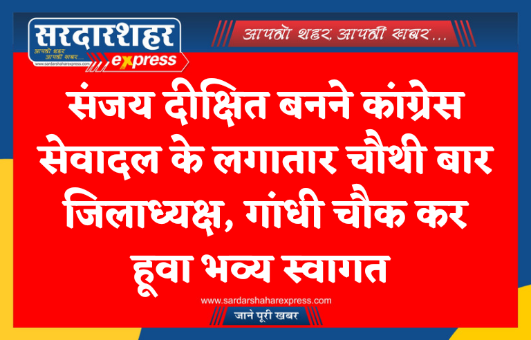 सरदारशहर एक्सप्रेस 19 जुलाई 2023। संजय दीक्षित को लगातार चौथी बार कांग्रेस…