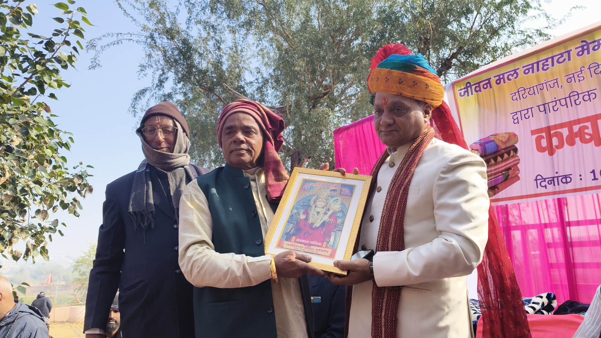 सरदारशहर एक्सप्रेस 10 जनवरी 2026/ मनीष पांडिया। जीवनमल नाहटा मेमोरियल ट्रस्ट, दरियागंज (नई दिल्ली) की ओर से निर्वाण धोरा फूसराज जी की कुटिया स्थित मंगलमूर्ति हनुमान मंदिर परिसर में कंबल वितरण कार्यक्रम आयोजित किया गया। कार्यक्रम के तहत शीत ऋतु से बचाव के उद्देश्य से सप्तऋषि वेद वेदांग ऋषिकुल के बटुकों एवं अन्य जरूरतमंदों को 400 कंबल वितरित किए गए। कार्यक्रम में विधायक पं. अनिल शर्मा, बंशीधर बोहरा, रामवतार जोशी, हुलासमल व्यास एवं दुर्गाराम पारीक ने कंबल वितरण किया। साथ ही श्रद्धालुओं के लिए प्रसाद का आयोजन भी किया गया।ट्रस्ट के प्रतिनिधि पूनमचंद पारीक ने बताया कि जीवनमल नाहटा मेमोरियल चैरिटेबल ट्रस्ट, नई दिल्ली द्वारा प्रतिवर्ष जरूरतमंदों की सहायता के उद्देश्य से ऐसे सेवा कार्य किए जाते हैं। कंबल वितरण से पूर्व प्रातः 9 बजे मंदिर में सुंदरकांड पाठ का आयोजन किया गया तथा हनुमान जी महाराज से क्षेत्र की सुख-समृद्धि एवं खुशहाली की कामना की गई। इस अवसर पर उमरदीन सैयद, कल्याणसिंह मेलूसर, देवकरण जोशी, प्रहलादराय पाण्डिया, फारूक व्यापारी, मनफूल फौजी, तेजपाल मास्टर, सुरेश तिवाड़ी, रामप्रसाद बोहरा, श्रीनिवास पुरोहित, जयदेवसिंह, चम्पालाल सोनी, सत्यनारायण जागिड़, मांगीलाल जोशी, मांगीलाल तिवाड़ी, भंवरलाल तिवाड़ी, भंवरलाल आसपालसर, राजेश जोशी पुजारी, ओमप्रकाश गोगासर, संजय दीक्षित, राजेन्द्र मोदी, महावीर माली, शोभाकान्त स्वामी, शम्भूदयाल पाण्डिया, रावत जांगिड़, मनोज माली, अब्दुल सतार, मुकेश राजपुरोहित, कमल आसोपा, गजेन्द्र तिवाड़ी, तरुण तिवाड़ी, नाहर सिंह, प्रदीप पांडिया नैयासर, नबाब ठेकेदार, शेर मोहम्मद, सत्यनारायण पुरोहित, प्रदीप पुरोहित सहित बड़ी संख्या में श्रद्धालु एवं गणमान्य नागरिक उपस्थित रहे। संचालन पार्षद राजेश पारीक ने किया।