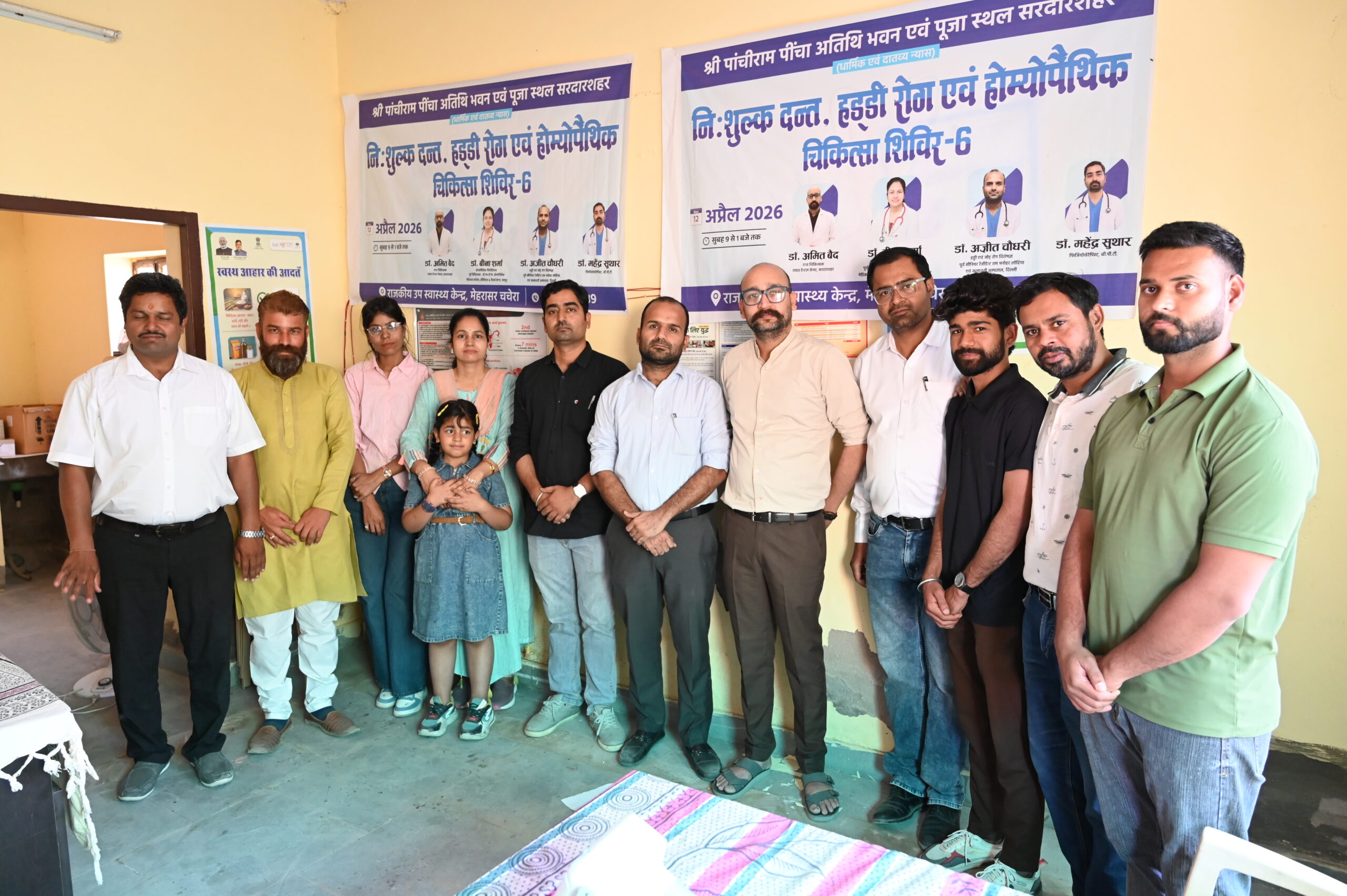 सरदारशहर एक्सप्रेस / मनीष पांडिया। श्री पांचीराम पींचा अतिथि भवन एवं पूजा स्थल व राघव डेंटल केयर सरदारशहर के संयुक्त तत्वाधान में गांव मेहरासर चचेरा में निशुल्क दंत, हड्डी रोग एवं होम्योपैथी चिकित्सा शिविर आयोजित किया गया। फोगां के 122 मरीजों ने इस चिकित्सा शिविर का लाभ उठाया। इस शिविर में 122 मरीजों को दंत निकालना, आर सी टी, नए दंत लगाने एवं दवाइयों का निशुल्क वितरण किया गया शिविर में डॉ अमित बैद दंत चिकित्सक, डॉ अजीत चौधरी, डॉ महेंद्र सुथार एवं डॉ बीना शर्मा ने अपनी चिकित्सा सेवा दी।
