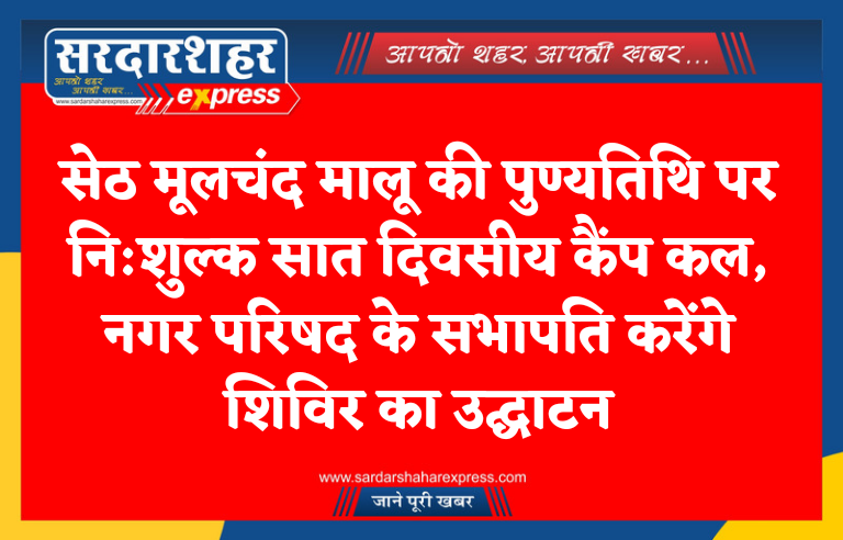 सेठ मूलचंद मालू की पुण्यतिथि पर नि:शुल्क सात दिवसीय कैंप कल, नगर परिषद के सभापति करेंगे शिविर का उद्घाटन