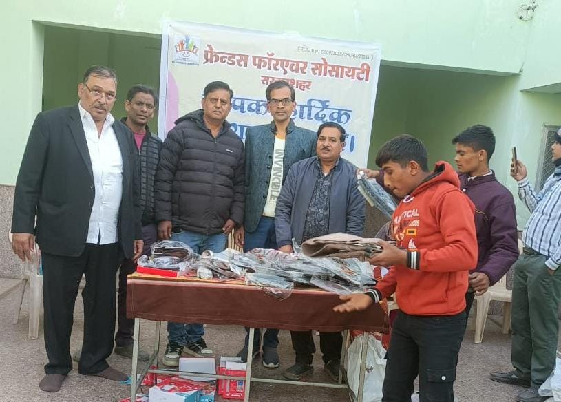 सरदारशहर एक्सप्रेस 28 जनवरी 2026/ मनीष पांडिया। स्थानीय संस्था फ्रेंड्स फॉरएवर सोसायटी द्वारा गांधी विद्या मंदिर स्थित दानवीर सेठ सोहनलाल दूगड़ निराश्रित बाल गृह में आवासित बच्चों को वस्त्र (अंडरगारमेंट्स) वितरित किए। सोसायटी के पदाधिकारियों ने बच्चों की बुनियादी जरूरतों को ध्यान में रखते हुए उन्हें नए वस्त्रों के पैकेट भेंट किए।
