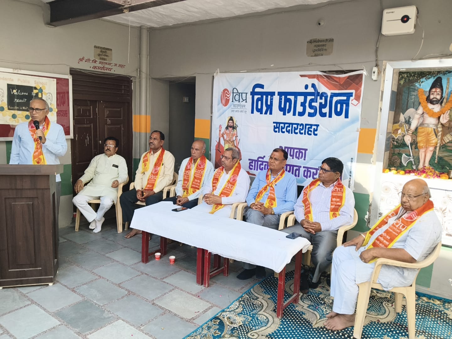 सरदारशहर एक्सप्रेस / मनीष पांडिया। रविवार को स्थानीय गोड़ विप्र महासभा, सरदारशहर के तत्वावधान में भगवान परशुराम जयंती के पावन अवसर पर एक भव्य एवं गरिमामयी कार्यक्रम का आयोजन किया गया, जिसमें विप्र समाज के लोगों की उल्लेखनीय एवं उत्साहपूर्ण उपस्थिति रही। कार्यक्रम का शुभारंभ भगवान परशुराम के जयघोष एवं विधिवत पूजन के साथ हुआ। पंडित कैलाश चौमाल द्वारा किए गए वैदिक मंत्रोच्चार से सम्पूर्ण परिसर आध्यात्मिक ऊर्जा से गुंजायमान हो उठा। यह आयोजन ऋषिकुल आश्रम के अध्यक्ष हुलासमल व्यास के मुख्य आतिथ्य एवं श्यामजी गिल की अध्यक्षता में सम्पन्न हुआ। मंच पर डॉ. महेंद्र शर्मा, राजीव भोजक, किशन सारस्वत, जगदीश शर्मा एवं गोपी बोचीवाल सहित गणमान्य अतिथि विराजमान रहे। मुख्य वक्ता सुनील हरितवाल ने अपने ओजस्वी उद्बोधन में भगवान परशुराम के आदर्शों, उनके पराक्रम एवं समाज के प्रति उनके योगदान पर विस्तृत प्रकाश डालते हुए उपस्थित जनसमूह को प्रेरित किया। वहीं विप्र फाउंडेशन के स्थानीय अध्यक्ष डॉ. महेंद्र शर्मा ने जयंती के अंतर्गत आयोजित होने वाले अष्ट दिवसीय कार्यक्रमों की विस्तृत जानकारी देते हुए समाजबंधुओं से सक्रिय सहभागिता का आह्वान किया। कार्यक्रम में मदनलाल बबेरवाल, अशोक गोड़ , महेंद्र देरासरी, जगदीश शर्मा, राजीव भोजक, प्रदीप दीक्षित, शंकर उपाध्याय, श्यामजी गिल एवं प्रवीण शर्मा सहित अनेक वक्ताओं ने अपने विचार रखते हुए ब्राह्मण समाज की वर्तमान चुनौतियों, कुरीतियों के उन्मूलन एवं सामाजिक जागरूकता की आवश्यकता पर बल दिया। मुख्य अतिथि हुलासमल व्यास ने अपने प्रेरणादायी संबोधन में कहा कि “ब्राह्मण कोई मात्र जाति नहीं, बल्कि एक महान विचार, संस्कार और ज्ञान की ज्योति है, जिसने युगों से समाज को दिशा प्रदान की है। विचारों को कभी समाप्त नहीं किया जा सकता।” उन्होंने वर्तमान समय में ब्राह्मण समाज के समक्ष खड़ी चुनौतियों का उल्लेख करते हुए एकजुटता, शिक्षा एवं जागरूकता को सबसे बड़ा शस्त्र बताया। उन्होंने “वसुधैव कुटुम्बकम” के आदर्श को अपनाते हुए समाज को और अधिक सशक्त एवं संगठित बनने का आह्वान किया। युवा प्रकोष्ठ अध्यक्ष सुनील मिश्र ने कहा कि विप्र फाउंडेशन सदैव शोषित, पीड़ित एवं जरूरतमंद ब्राह्मण समाज के साथ खड़ा है और अंतिम पंक्ति में बैठे व्यक्ति तक सहायता पहुंचाने के लिए प्रतिबद्ध है। इस अवसर पर राजकुमार गोड़, कमलकांत शर्मा, राजेंद्र तिवाड़ी, नरेंद्र राजपुरोहित, मांगीलाल सेवड़ा, डॉ. पवन महर्षि, राम निरंजन शर्मा, सुशील गुजरगोड़, किशन जी, मयंक शर्मा, पं. कैलाश चौमाल, सुरेंद्र शर्मा, मनोज गोड़, मांगीलाल नथोलिया सहित बड़ी संख्या में समाजबंधु उपस्थित रहे। कार्यक्रम का सफल एवं प्रभ