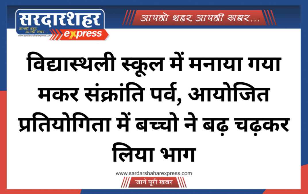 सरदारशहर एक्सप्रेस। मकर संक्रांति के अवसर पर विद्यास्थली स्कूल में हुआ कार्यक्रम का आयोजन, छात्रों को मकर संक्रांति के महत्व के बारे में बताया गया। कार्यक्रम में छात्र छात्राओ के लिए आयोजित विभिन्न प्रतियोगिता भी रखी गई। प्रतियोगिता में भाषण, ग्रुप गेम्स एवंम पतंग बनाने की प्रतियोगिता रखी।