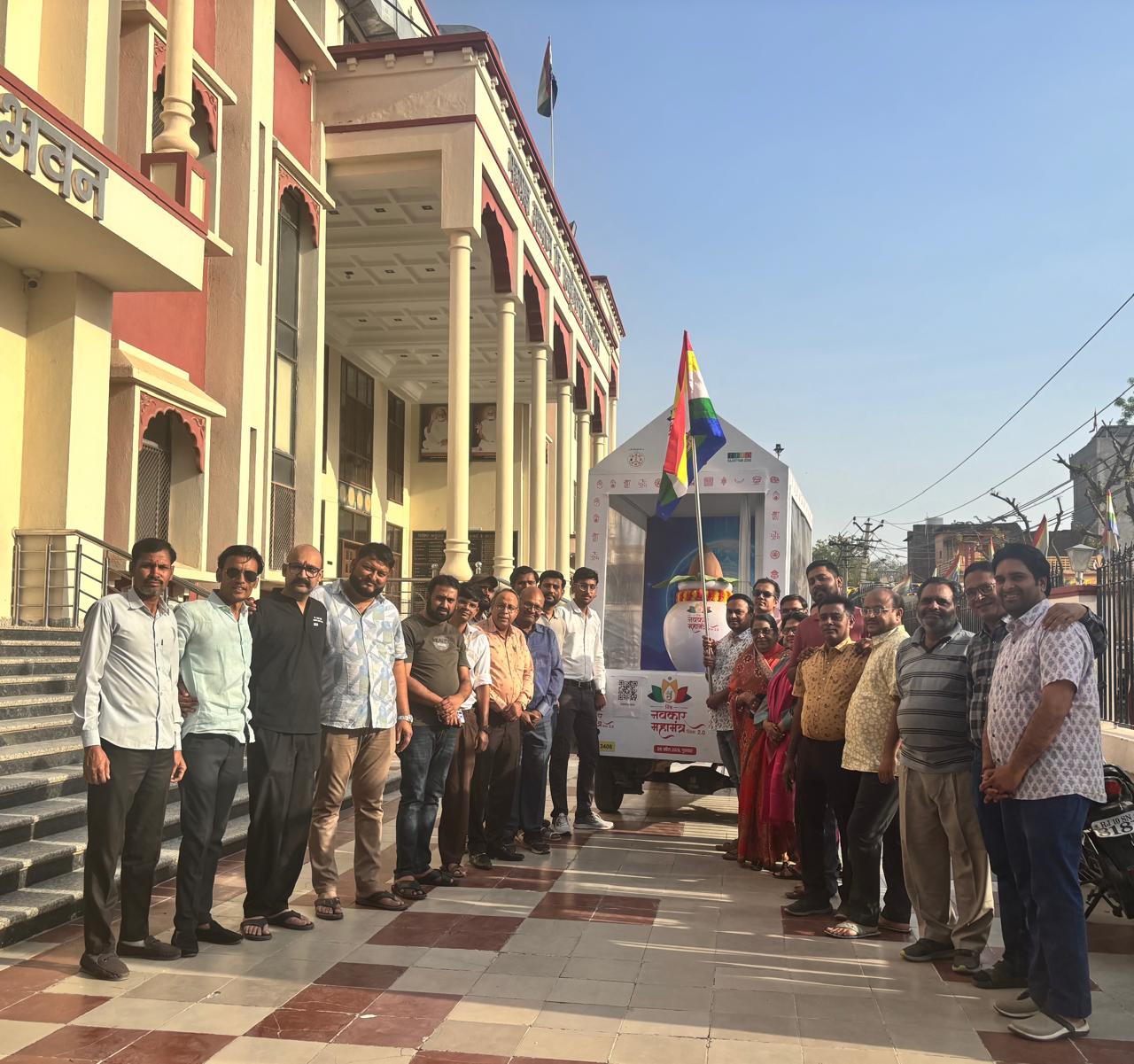 इस हेतु जन-जागरूकता अभियान के अंतर्गत जैआईटीओ द्वारा राजस्थान में नवकार कलश में तीन रथों के माध्यम से यात्रा निकाली जा रही है। इस यात्रा को 1 मार्च को जयपुर में आयोजित जीतो टाउन प्रतिनिधि सम्मेलन में मुख्यमंत्री भजनलाल शर्मा द्वारा धर्म ध्वजा दिखाकर रवाना किया गया । सोमवार देर शाम को नवकार कलश रथ का तेरापंथ भवन में सम्पूर्ण जैन समाज द्वारा भव्य स्वागत किया गया। इस अवसर पर श्री जैन श्वेताम्बर तेरापंथी सभा मंत्री राजीव दुगड़, उपाध्यक्ष विकास सुराणा, कोषाध्यक्ष गुलाब नाहटा, महिला मंडल अध्यक्षा श्रीमती शांति देवी चिंडालिया, तेयुपं के मोहित आंचलिया, धीरज दुगड़, चन्द्रप्रकाश सेठिया, विशाल बोरड़, शुभम सेठिया, सम्भव बरड़िया, पारस बुच्चा, डॉ अमित बैद, डॉ रश्मि बैद, धीरज छाजेड़, पंकज बच्छावत, अमित आंचलिया, विकास बोथरा, पवन शर्मा, दिलीप सिंह,जीटीआर गौरव सेठिया, राजीव दुगड़ सहित समाज के गणमान्य व्यक्ति उपस्थित रहे।जीटीआर गौरव सेठिया ने बताया कि जेआईटीओ नवकार कलश रथ यात्रा के माध्यम से समाज में आध्यात्मिक चेतना का संचार तथा नवकार महामंत्र के संदेश को जन-जन तक पहुँचाने का प्रेरणादायक प्रयास कर रहा है। जीटीआर राजीव दुगड़ ने विश्व नवकार महामंत्र दिवस कि जानकारी देते हुए आगामी 9 अप्रैल 2026 को तेरापंथ भवन मे प्रातः 8.01 से 9.36 बजे तक नवकार महामंत्र का सामूहिक जाप रखा गया हैं। जिसमे सम्पूर्ण समाज को भाग लेने के लिए प्रेरित किया गया और वृहद मंगल पाठ सुना कर रथ को रवाना किया