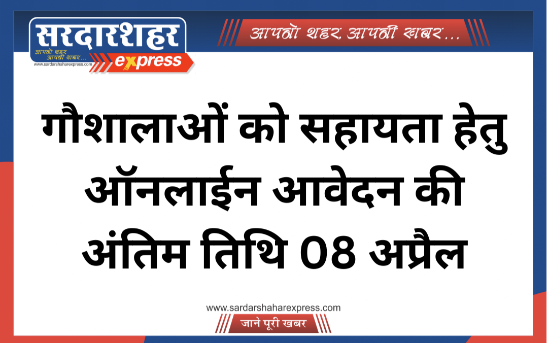 गौशालाओं को सहायता हेतु ऑनलाईन आवेदन की अंतिम तिथि 08 अप्रैल