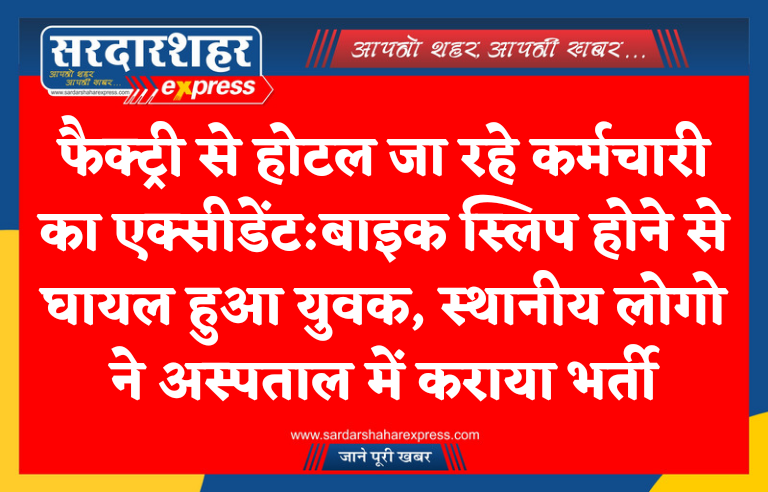 फैक्ट्री से होटल जा रहे कर्मचारी का एक्सीडेंट:बाइक स्लिप होने से घायल हुआ युवक, स्थानीय लोगो ने अस्पताल में कराया भर्ती