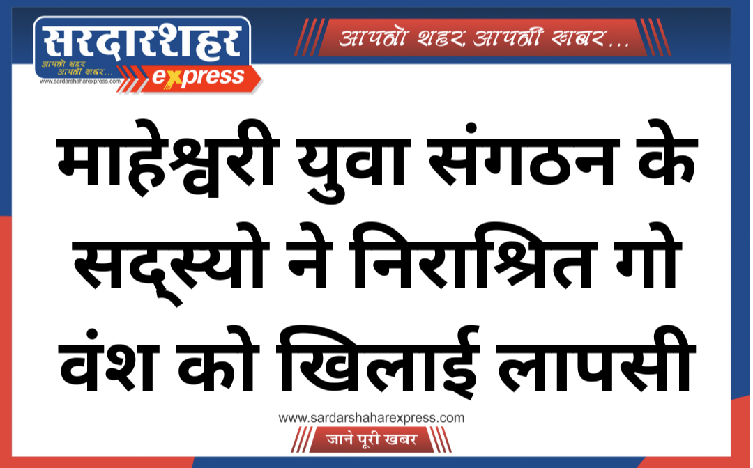 माहेश्वरी युवा संगठन के सद्स्यो ने निराश्रित गो वंश को खिलाई लापसी