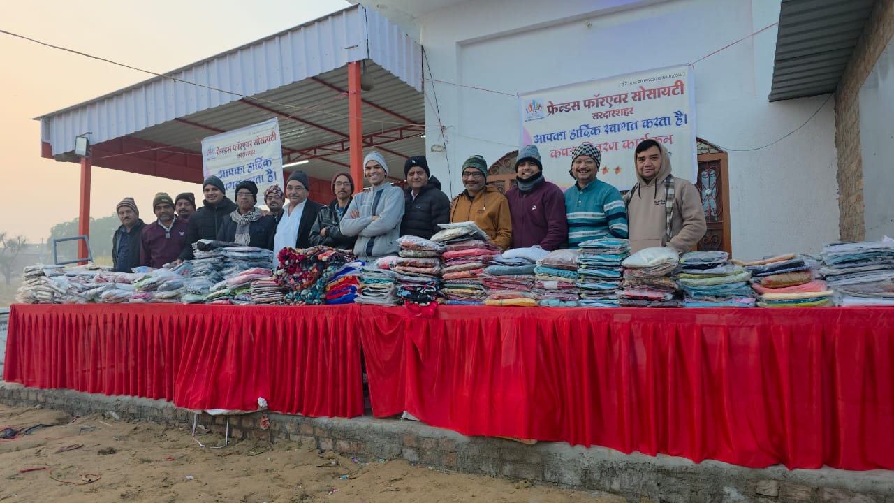 सरदारशहर एक्सप्रेस 4 जनवरी 2026/ मनीष पांडिया। कड़ाके की ठंड और सेवा के संकल्प के साथ फ्रेंड्स फॉरएवर सोसाइटी, सरदारशहर द्वारा रविवार को शहर के विभिन्न स्थानों पर सेवा कार्यों का आयोजन किया गया। जिसमें सोसाइटी के सदस्यों ने बीकानेर रोड स्थित तेजाजी जी मंदिर के पास जरूरतमंदों को वस्त्र वितरित किए, वहीं कानी देवी सेवा संस्था (मंदबुद्धि महिला अनाथ आश्रम) में पहुंचकर बेसहारा महिलाओं को कंबल भेंट किए।