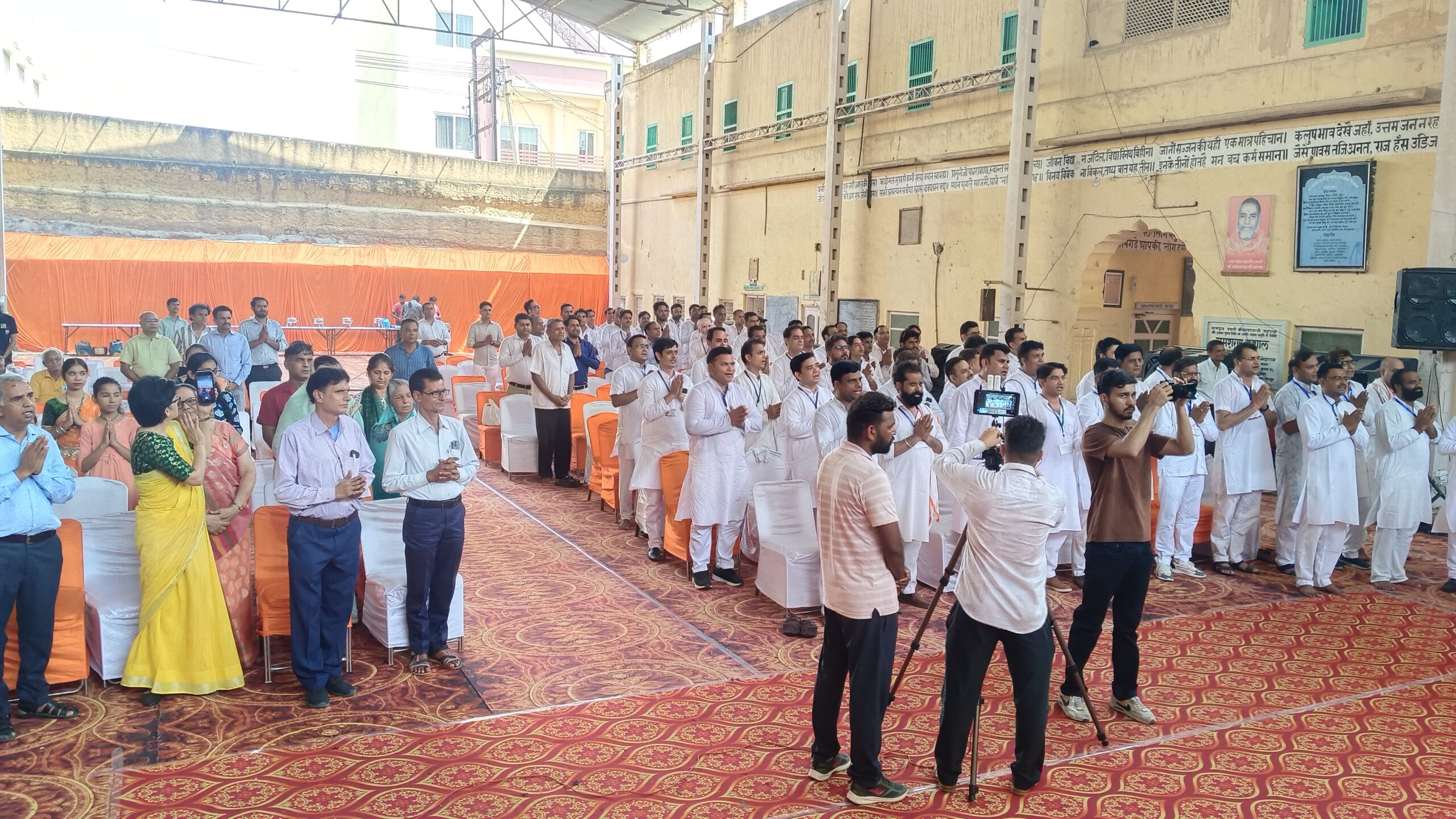 लेकिन आज गुरु के स्थान पर सर हो गये जो बच्चों को पढाते जरूर है लेकिन वे संस्कार नही दे पा रहे हैं। संस्कार से ही हमारी संस्कृति बचेगी और राष्ट्र प्रगति करेगा। आज हमें अत्यंत खुशी हो रही है कि हमारे द्वारा शिक्षा के साथ दिये गये संस्कार फलिभूत हो रहे हैं। हमें आगे भी यह प्रयास करने होंगे कि हमारी भावी पीडि को भी संस्कारवान बनाया जाए जिससे हमारी संस्कृति सुरक्षित रहे। इस अवसर पर गुरू रामप्रसाद, योगेशजी, दिलिपजी, राजेशजी, राजकुमारजी, नौरतनजी, निर्मलजी, रामनिरंजनजी, विपुलजी, मोतीलालजी, रुपदानजी, गोविंदसिंह सहित स्वः गुरूजनो के परिवार को भी सम्मानित किया गया।