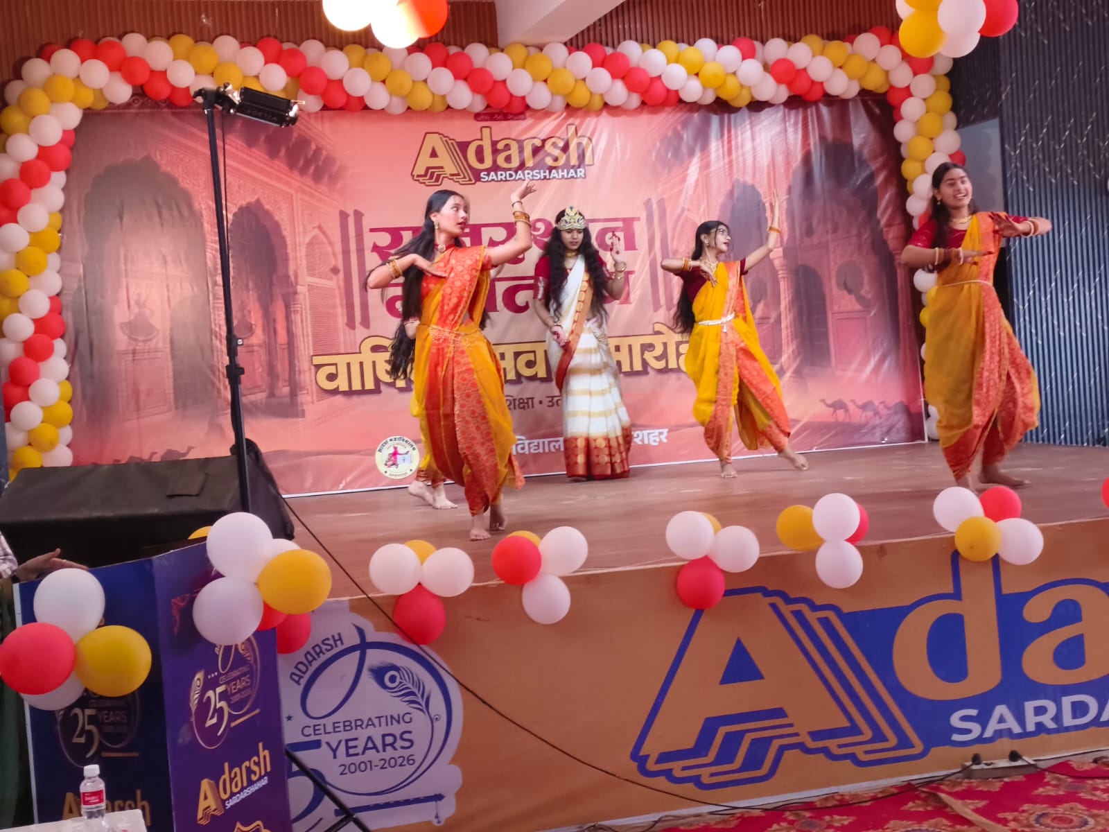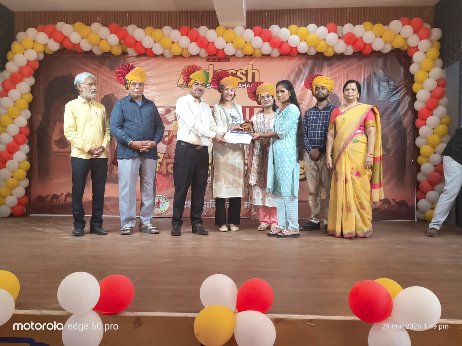 सरदारशहर एक्सप्रेस/ मनीष पांडिया। आदर्श महाविद्यालय सरदारशहर में” वार्षिक उत्सव “और “राजस्थान दिवस” का संगम बड़े ही हर्षोल्लास के साथ मनाया गया। कार्यक्रम का शुभारंभ मुख्य अतिथियों द्वारा मां सरस्वती के समक्ष दीप प्रज्वलित कर किया गया सांस्कृतिक कार्यक्रम की शुरुआत गणेश वंदना और श्याम भजन के साथ भक्तिमय माहौल में हुई। विद्यार्थियों ने राजस्थानी ,हरियाणवी और पंजाबी लोक संस्कृतियों की इंद्रधनुषी छटा बिखेरी विशेष रूप से “बेटी बचाओ बेटी पढ़ाओ “विषय पर आधारित नाटक की मार्मिक प्रस्तुति ने उपस्थित जनसमूह को भाव विभोर कर दिया और सामाजिक जागरूकता का कड़ा संदेश दिया।