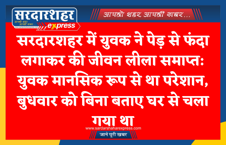 सरदारशहर में युवक ने पेड़ से फंदा लगाकर की जीवन लीला समाप्त: युवक मानसिक रूप से था परेशान, बुधवार को बिना बताए घर से चला गया था