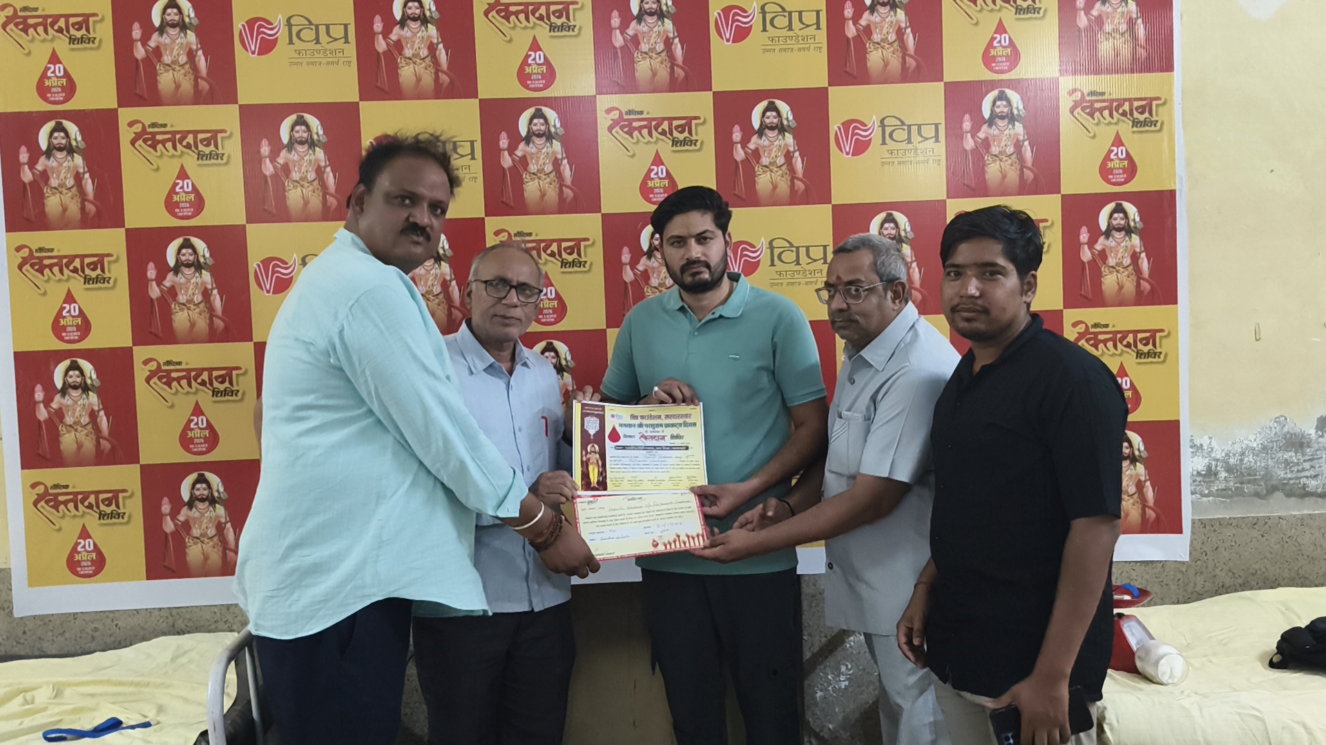 अष्टदिवसीय सेवा कार्यक्रम एवं यह रक्तदान शिविर इसके सशक्त उदाहरण हैं। तहसील अध्यक्ष वैद्य महेन्द्र शर्मा ने अपने उद्बोधन में कहा कि विप्र फाउंडेशन केवल जातीय संगठन नहीं, बल्कि सम्पूर्ण समाज को साथ लेकर चलने वाला संगठन है, जो समरस, संस्कारित एवं गतिशील समाज के निर्माण हेतु राष्ट्र सेवा के संकल्प के साथ निरंतर अग्रसर है। युवा प्रकोष्ठ प्रदेशाध्यक्ष सुनील मिश्र ने कहा कि उत्तम चरित्र और सशक्त युवा ही राष्ट्र की सच्ची पूंजी हैं। आपसी सहयोग और समन्वय से ही संगठन और राष्ट्र को नई ऊंचाइयों तक पहुंचाया जा सकता है। अंत में तहसील अध्यक्ष वैद्य महेन्द्र शर्मा ने सभी अतिथियों, रक्तदाताओं एवं सहयोगियों का आभार व्यक्त करते हुए कार्यक्रम के सफल आयोजन हेतु सभी का धन्यवाद ज्ञापित किया।
