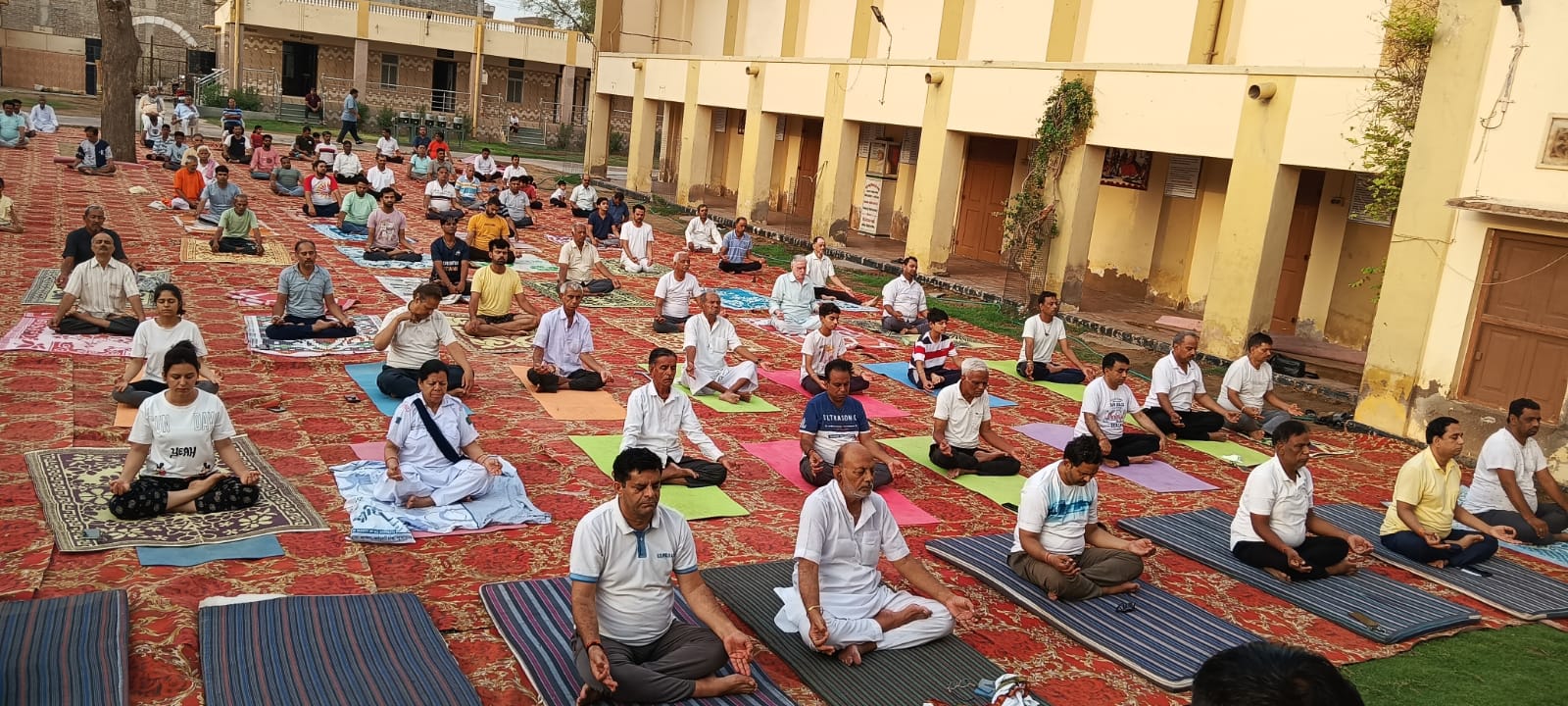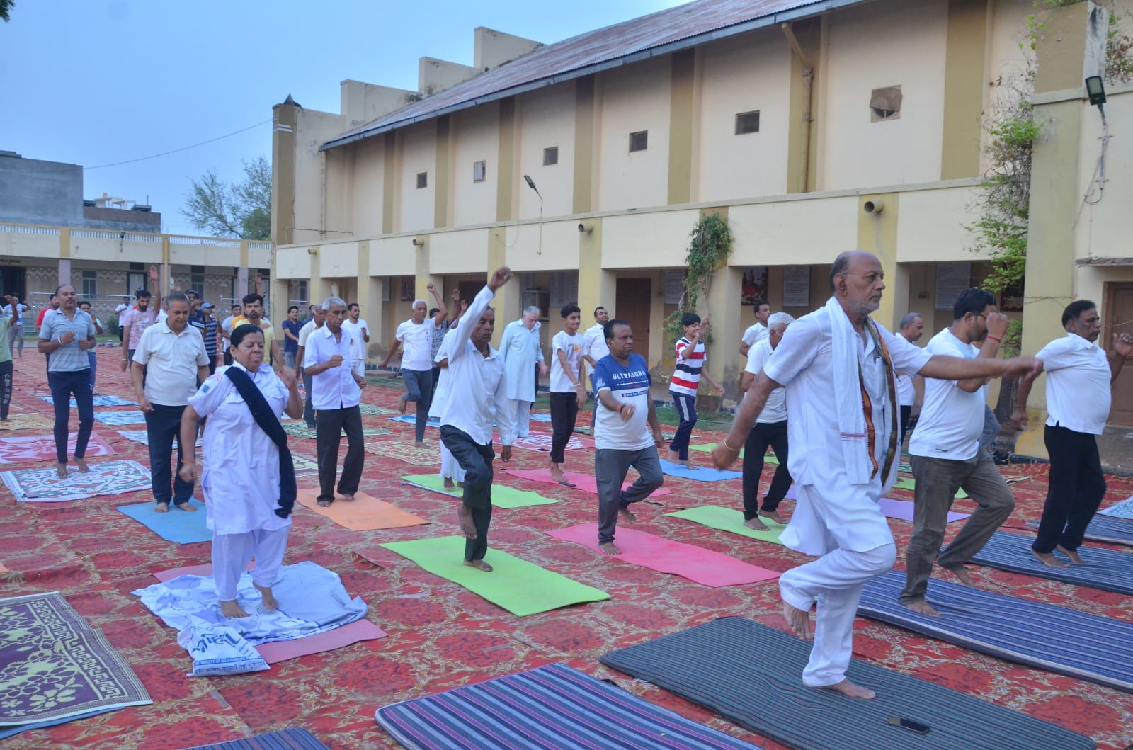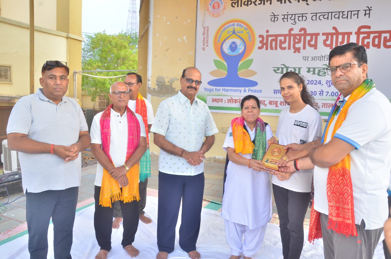 सरदारशहर एक्सप्रेस। स्थानीय बाबू शोभाचंद जम्मड भवन में आज अंतर्राष्ट्रीय योग दिवस के अवसर पर शाकम्भरी विद्यापीठ एवं लोक रंजन परिषद के तत्वावधान में योग शिविर का आयोजन किया गया। योग गुरु राधेश्याम भार्गव के निर्देशन में सैकड़ों योग साधकों ने योगासनों का अभ्यास किया एवं उनसे होने वाले लाभों के बारे में जानकारी प्राप्त की। कार्यक्रम का शुभारम्भ लोकरंजन परिषद के शंकरलाल प्रेमाणी, शाकम्भरी विद्यापीठ के प्रधानाचार्य भारत गौड़, योग गुरु राधेश्याम भार्गव, चंपालाल सोनी, जगदीश प्रसाद प्रजापत, सरोज पारीक आदि ने दीप प्रज्वलन कर किया। योग साधिका विपाशा प्रेमाणी ने विभिन्न योगासनों का प्रदर्शन कर उपस्थित योग साधकों का मार्गदर्शन किया। इस अवसर पर सभापति राजकरण चौधरी, मधुसूदन राजपुरोहित, योगाचार्य महेंद्र शर्मा, आलोक सिंह, फूसराज स्वामी, ताराचंद महर्षि, संपत जांगिड़, अमित शर्मा, गोविन्द गौड़, विमल जम्मड, बाबूलाल प्रजापत, ललित जोशी, मानक चंद शर्मा, हरीश शर्मा, सुरेंद्र सिंह, चांदरतन मिश्र सहित अनेक जनप्रतिनिधियों एवं गणमान्य नागरिकों ने भाग लेकर योगाभ्यास किया। इस अवसर पर अनेक योग साधकों ने योग के द्वारा उनके जीवन में आए परिवर्तन के बारे में अपने अनुभव बताएं। कार्यक्रम के समापन सत्र में योग गुरु राधेश्याम भार्गव, मोहनलाल शर्मा, वैद्य महेंद्र शर्मा, फूसराज स्वामी, सरोज पारीक, बिपाशा प्रेमानी आदि को शाकम्भरी विद्यापीठ परिवार की ओर से योगाचार्य सम्मान से सम्मानित किया गया।